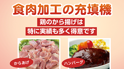 長い間、ピストン式をメインに機械を製造しておりますので、上記で上げたメリット、具材を傷めずに正確な充填ができる点を長年つきつめて機械設計をしております。